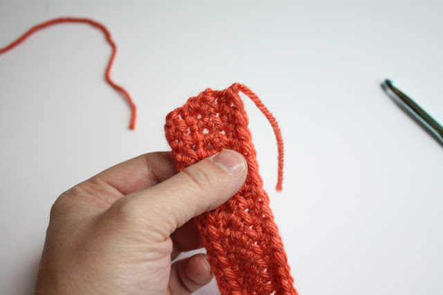 Instead of using hot glue, before you tie off and weave in your yarn, you can single-crochet the two shorter ends of the rectangle together, and wrap yarn around that part. It makes it a bit faster to make, and there is no need for glue.