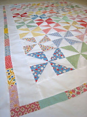The quilt looks totally cute! And I took your advice that the uneven seams make it unique and did NOT take out the row of quilt squares and restitch them. hehe.