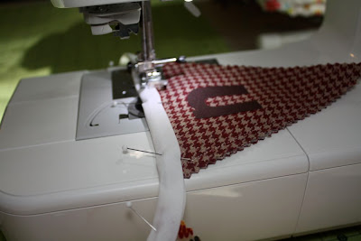 first, make your triangle pattern, i cut mine out of cardstock. of course it can be as large or small as you like! my triangle was 6 inches across the top, and 6.5 inches down each side.
