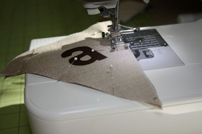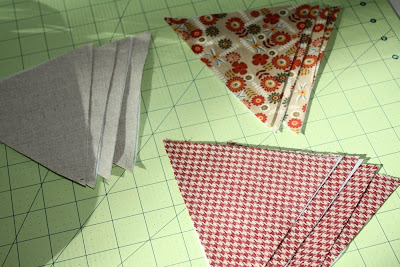 cut out your fabric and interfacing! cut out two pieces for each bunt (?), for this particular bunting there are 6 letters, so i cut out four per fabric since i had 3 fabrics picked out.