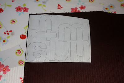 now trace your letters on the heat n bond BACKWARDS please. i used some chipboard letters from my sadly neglected scrapbook stash. apply to your fabric. (back side if there is one)