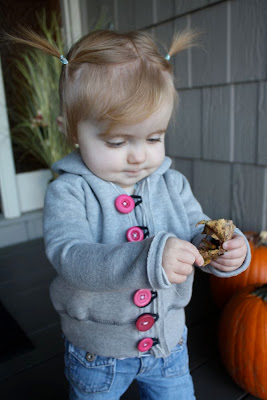 or her little baby pumpkins. yeah, she loves those things. usually she is smiling! hehe