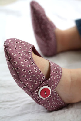 cute, no? and so easy, i whipped out these two pair in a nap time. strangely enough, sadie fits into the 3-6 month size (purple ones), but she’s always had small feet. i’m gonna have to make more of these for the new baby! after all, she’s gotta have a few new things of her own, right?