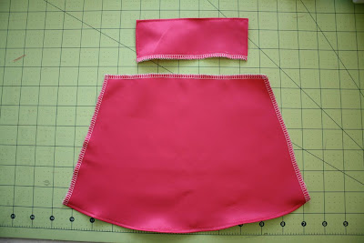 Next, hem your skirt and hem the sides and top of your bodice piece.