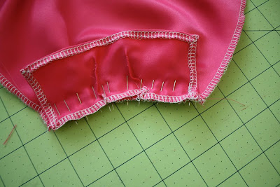 Now pin your skirt right sides together-and sew down about 4 inches from the bottom.