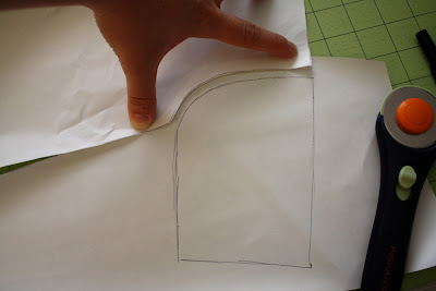 Next, cut that pattern out, and draw your sleeve piece. It should follow the curve of the shoulder seam and then come out straight like the picture shows. You can adjust sleeve length easily by shortening or lengthening it.