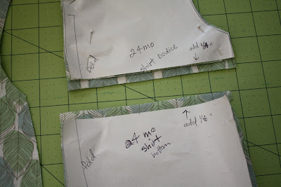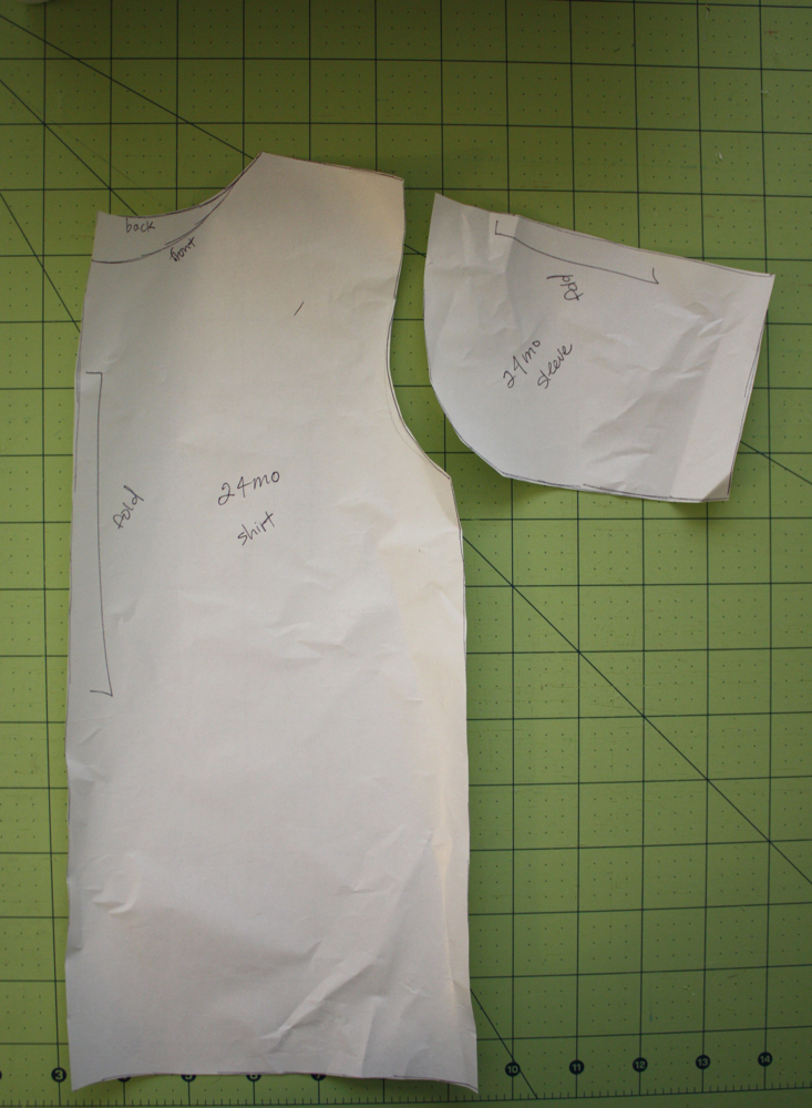 Trace around your shirt like so, leaving a 1/2 inch around the shirt to allow for seam allowances and room to grow into the shirt a little.