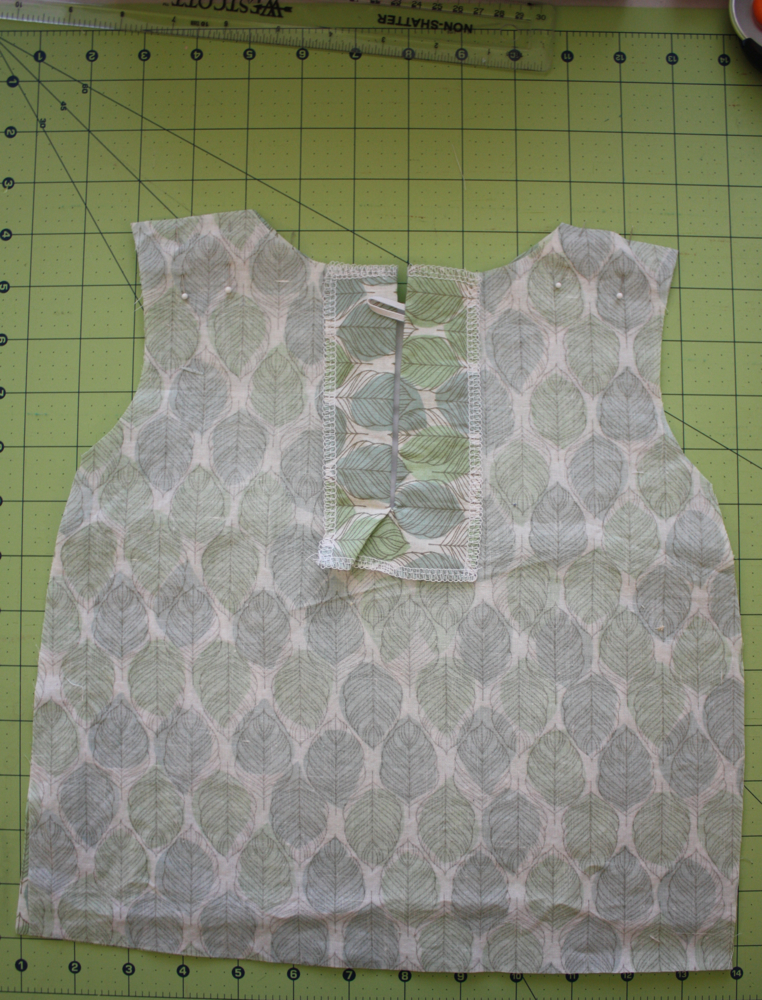 Next, place your front and back pieces right sides together and pin at the shoulder seams. Also, trim up the bottom of your shirt if it doesn’t match perfectly. (mine didn’t, no biggie)