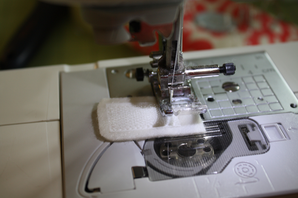 Place your velcro near the rounded end, and sew on like so. Do this for all four tabs.