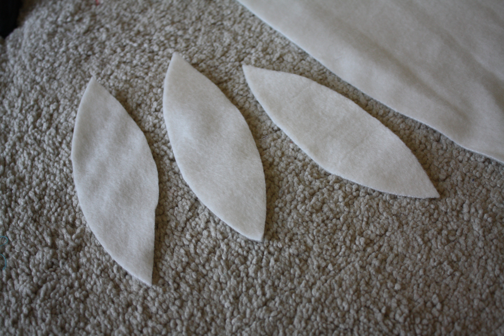 Cut out 4 tabs from your fleece-1″x1.5″, and round off the corners on one end if you like.