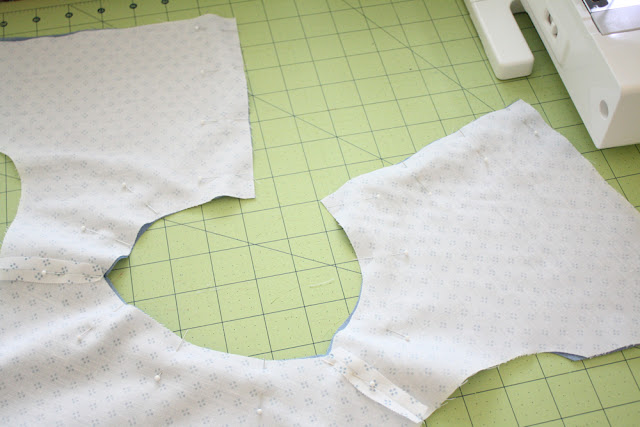 So to begin the bodice, pin your bodice pieces together at the shoulder seams, right sides together.
