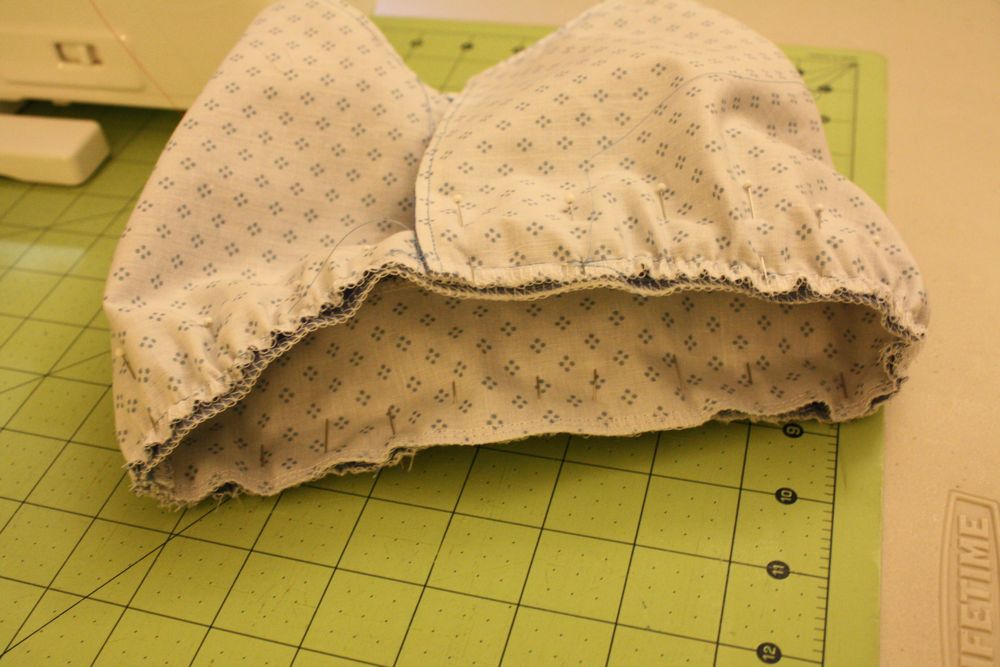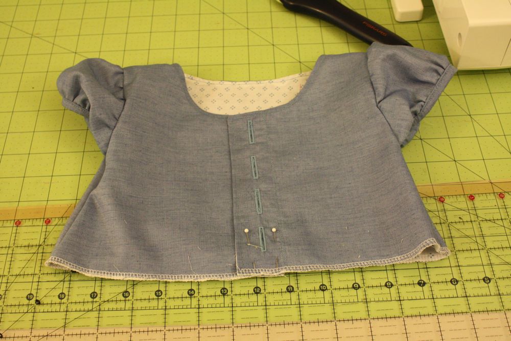 So here’s your finished bodice (I also serged around the bottom). You’ll need to pin the front