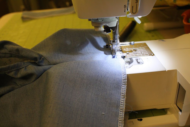 just right), and sewed the ends together, creating a tube. I then serged that edge (zig zag