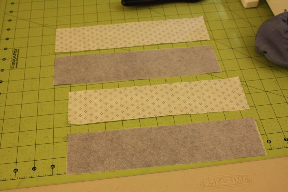 I cut 2 from the main fabric, 2 from the lining, and also 2 of some lightweight iron on