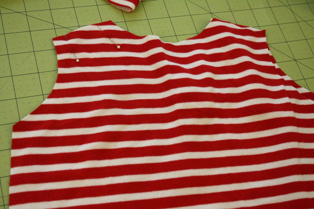 Then pin and sew ONE of the shoulder seams, right sides together.