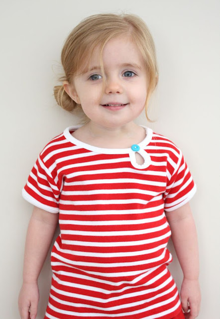 Very cute and a great tutorial! @ Anita, try using a twin needle on the hem. It looks like a straight stitch on top, but is zigzagged on the bottom and will give a little stretch without making the fabric look stretched out!