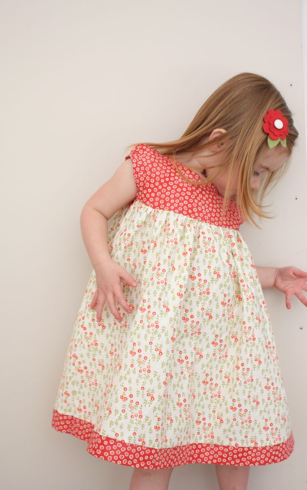 Beautiful fabric and girl! I love fun summery dresses. The hairclip is so cute too. Did you make it? I can’t tell if it’s felt or what. Mind posting pics or a tutorial?