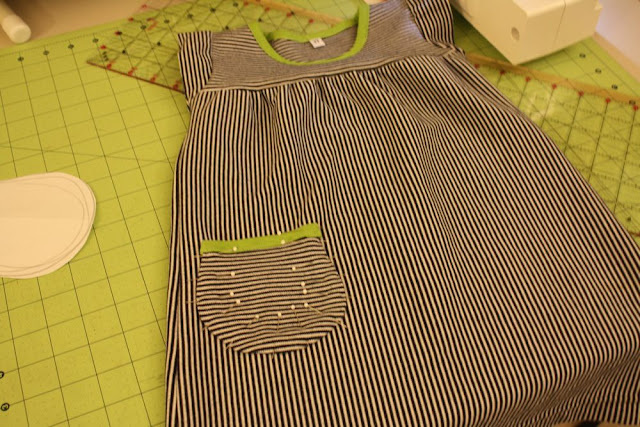 Your’s looks better than the inspiration. I like that your stripes are going vertical on the body of the dress and sleeves but horizontal on the bodice and pocket. It makes a big difference and is more pleasing to the eye. Also, the trim on the pocket makes the trim on the collar make sense.