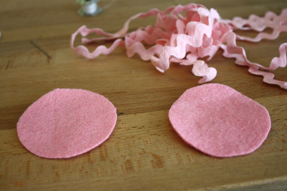 Then thread up your needle, knot the ends together and tack down the end of your ric rac to the edge of the felt.