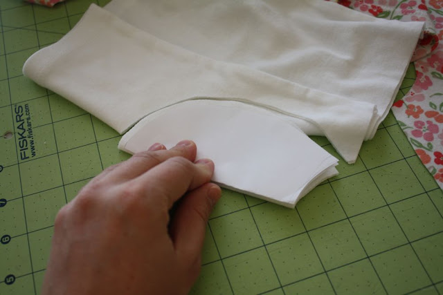 Then cut out two pieces on the fold of your white knit. (two layers so the pattern won’t show through)
