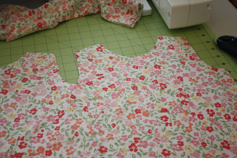 Ok So first off cut two bodice pieces on the fold, one should have a lower neckline. Use the bottom of the shirt if you can so you don’t have to hem it!