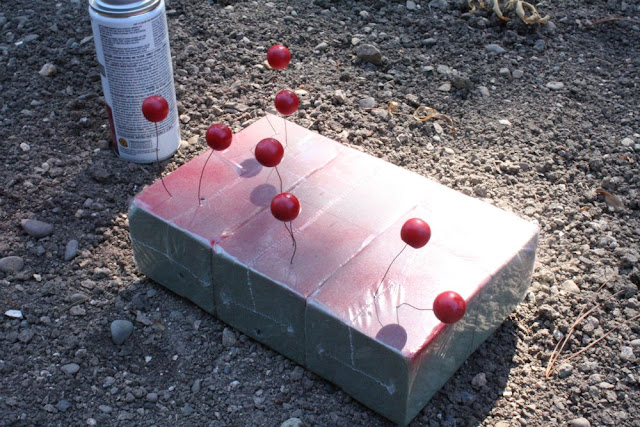 …stuck them in some styrofoam, and spray painted them red with a glossy paint.