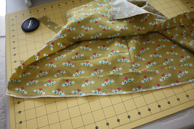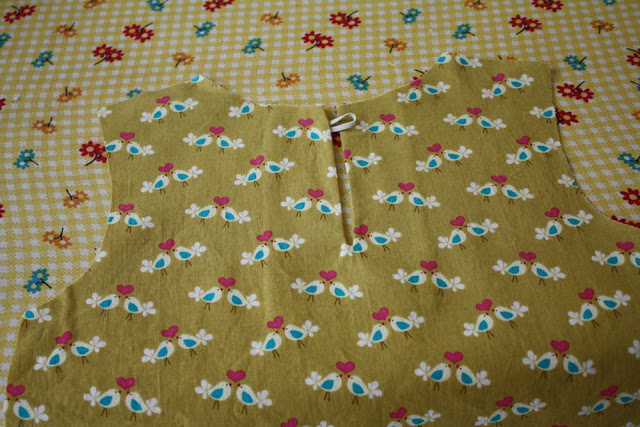 For the recent commenters: I finished my neckline with doublefold bias tape.