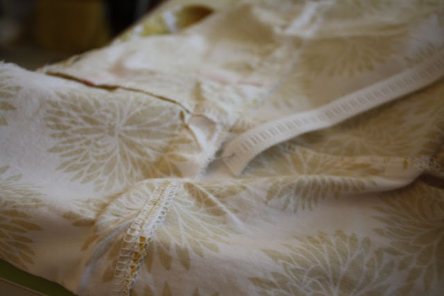 Then I created a button closure (directions here), sewed the shoulder seams together, and gathered the front of the neckline a little since it was cut wider than I normally would.