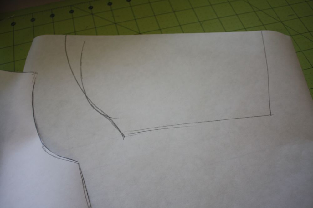 Then I used the armhole on the bodice to trace a sleeve pattern. (the top is the fold of course)