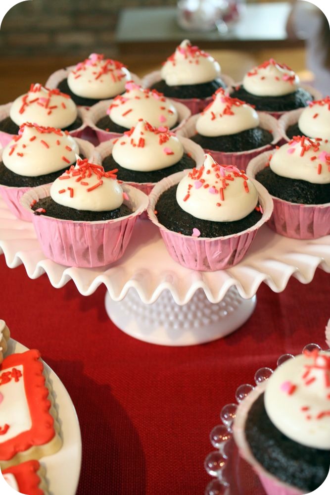 I made some chocolate cupcakes with cream cheese frosting, aren’t the little cupcake liners fun? They’re from Walmart, believe it or not. (Sadie was ticked off at me when she saw I did the sprinkles-I was in a rush so I didn’t think to have her help but she usually does with sprinkles. I’ll have to make it up to her sometime…like, let her eat a whole jar by herself?)