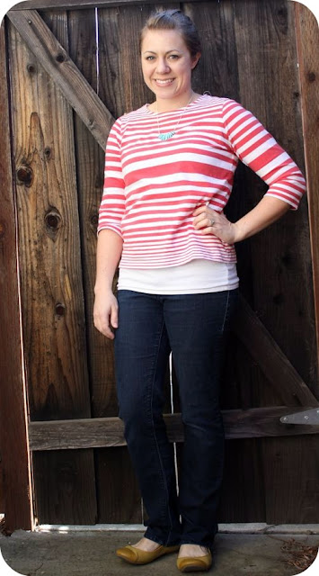 LOVE your first outfit and your last. Love that white top with black stripes and that black and white geometric skirt – I guess I am into black and white right now! =) Don’t tell me that skirt was clearance at Target – I can’t believe it would last that long!