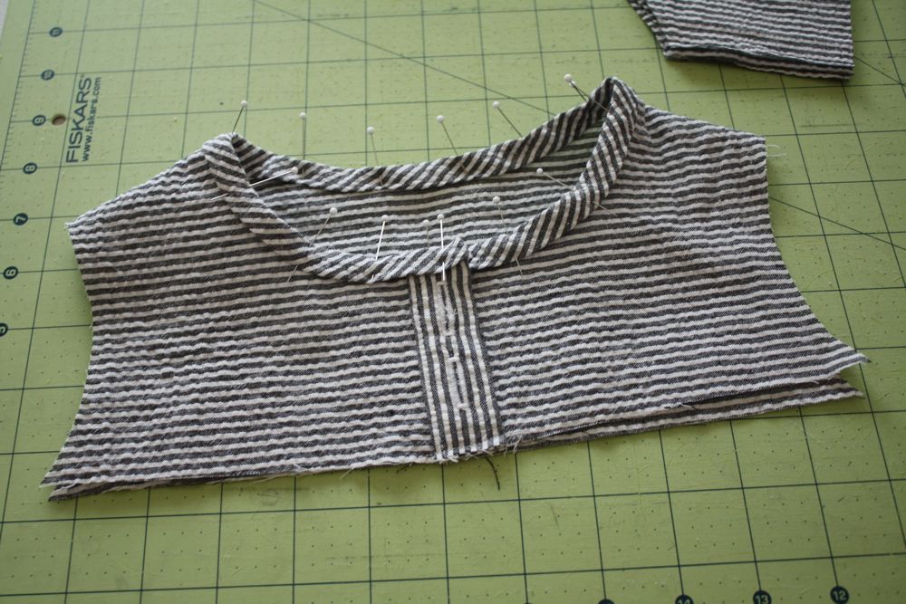 Then I sewed on the button tabs to the edges of the front bodice piece.