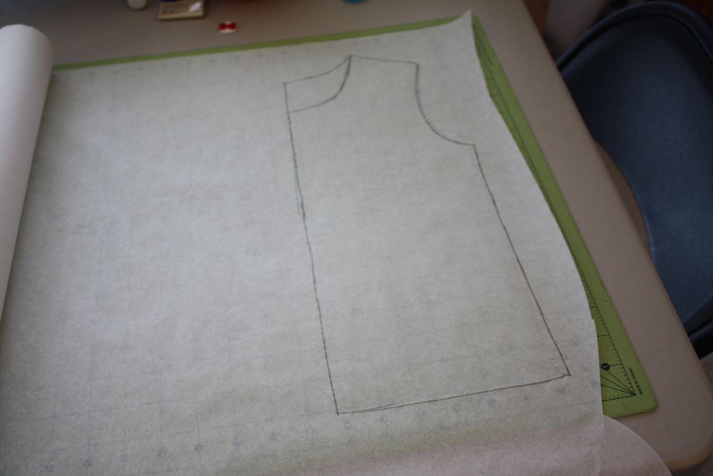 First I created a simple bodice pattern by tracing a tee folded in half.