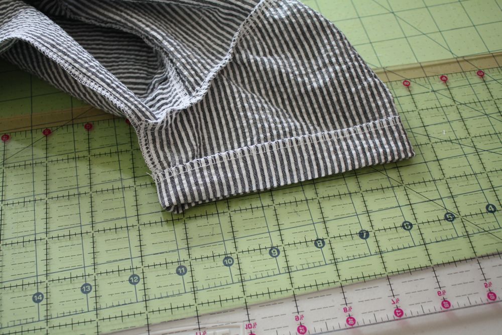 Fold down where we pressed the bottom of the sleeve earlier like so.