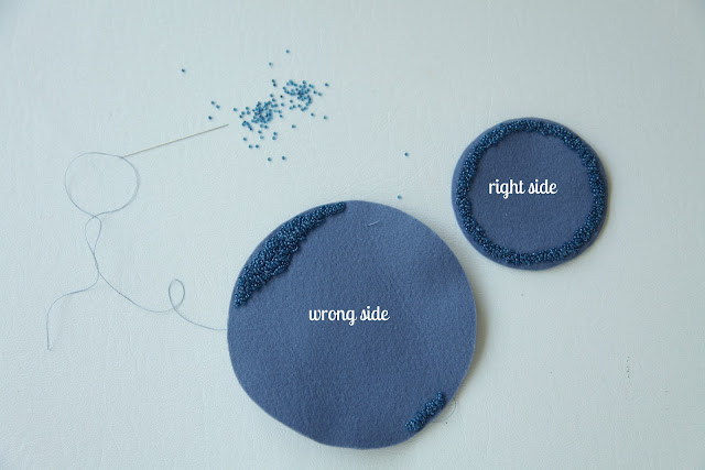 You can really embellish these any way you want. I used some seed beads, but you can use sequins, hand embroidery, or some fun vintage buttons. I added 2-4 beads at a time to create a mounded look.