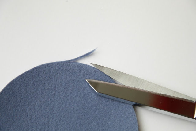 If you’re using the 3mm felt, bevel the edges on one side by trimming the edge at an angle around both circles.