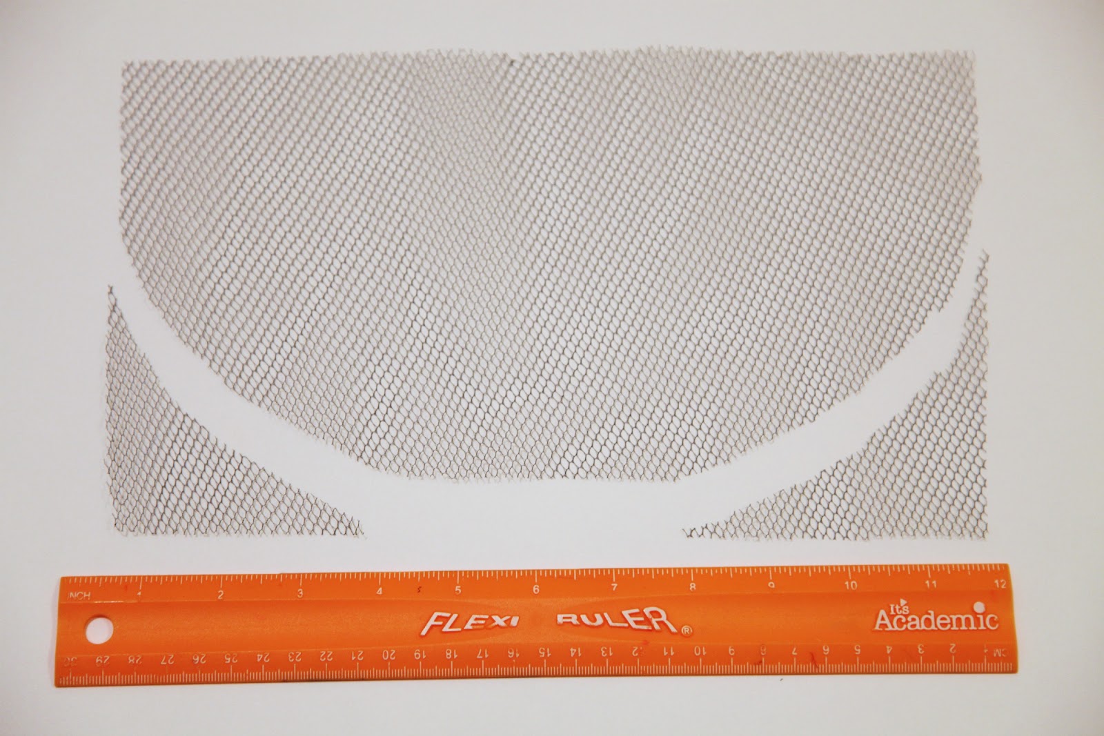 Cut a piece of tulle, about 11″ x 6″ and trim two corners. I like the look of the larger holed netting, but use what you have on hand.