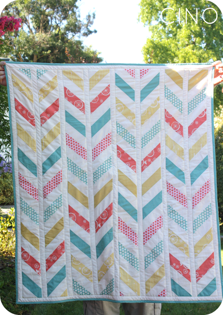 So I did use a herringbone tutorial-this one is great! I cut my pieces at a bit more of an angle than she did, and threw in some white sashing, but otherwise followed the tutorial pretty closely.