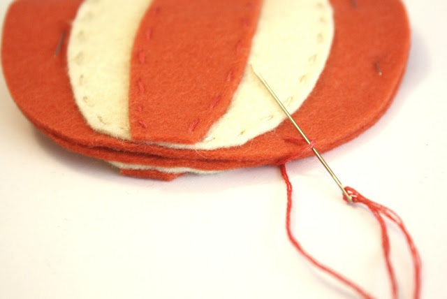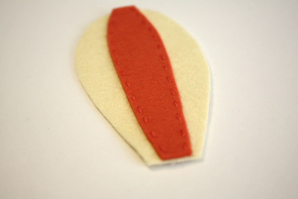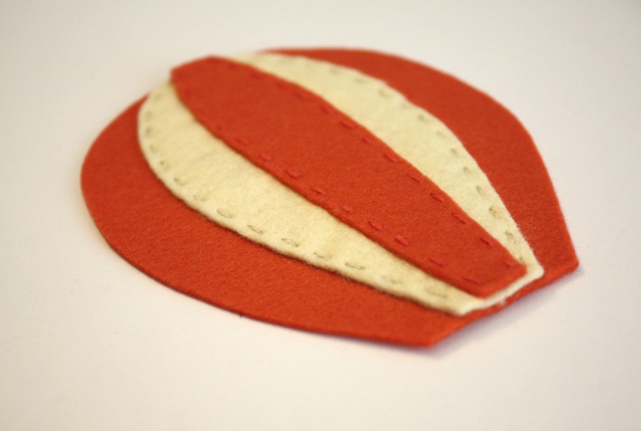 So as the picture above indicates, start your stitches near the top of the balloon, off to the side a bit. Stitch down into the bottom of the balloon piece like so.