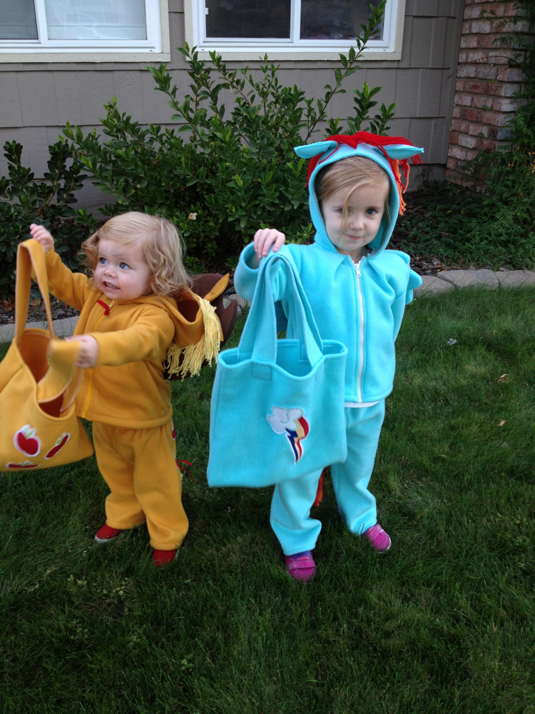 Confession: My girls hadn’t ever seen My Little Pony before you posted your girls’ Halloween costumes, and now they are hungrily watching any episode they can on YouTube. And more embarassingly, I am totally laughing along with them as we watch. Hee hee hee!