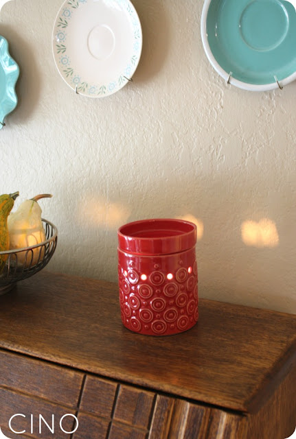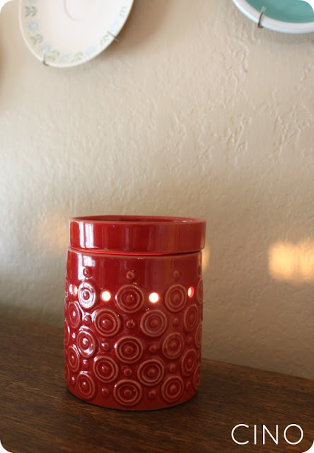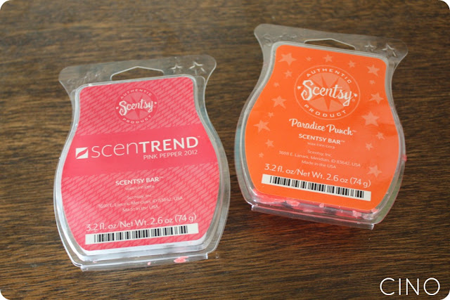 The nice folks over at Scentsy sent me this adorable red warmer and their newest, trendiest fragrance of 2012-Pink Pepper. They challenged me to mix it with other fragrances to find a fun new scent!