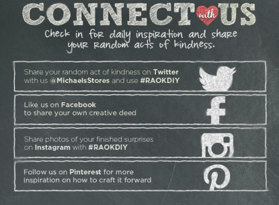 Also, leave a comment here for a chance to win a $5 Michaels gift card! I have 5 of them to giveaway to ya’ll. Tell me if you’ve ever received a Random Act of Kindness or if you’ve done one for someone else. Leave an email address please so I can contact you if you win!