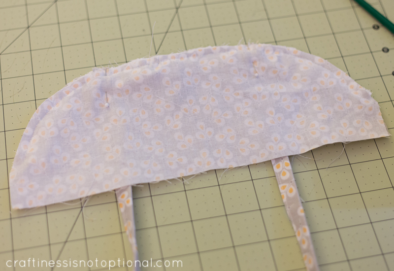 Repeat for the other bodice pieces, then turn right side out, press, and top stitch along the curve, avoiding the seam allowance on the side.