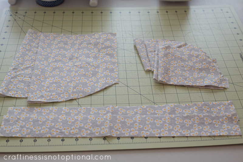 So now cut out two of the skirt pattern , four of the bodice (both on the fold), and then 4 strap pieces. Mine were 15″x2″. This size works for both sizes on the free pattern, and probably just lengthen them a bit for larger sizes.