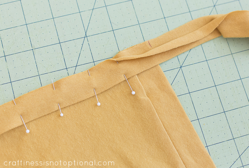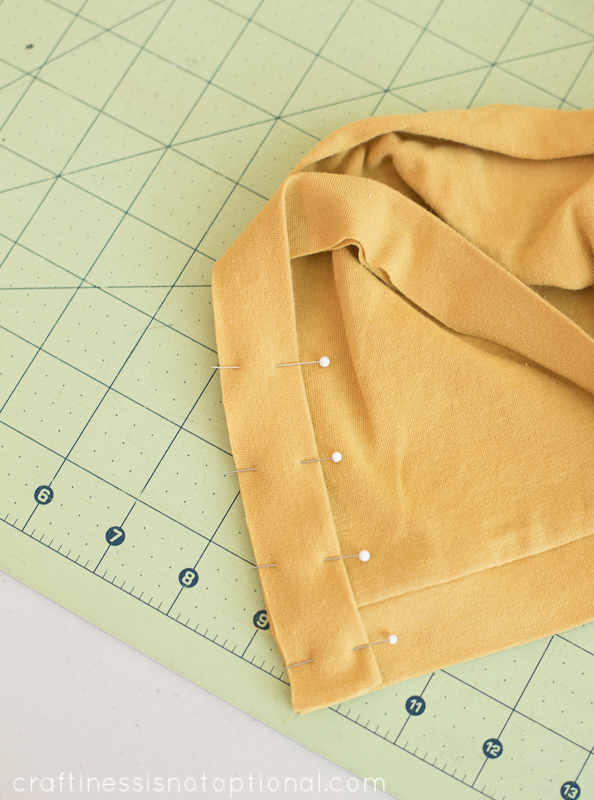 Then, lining it up with the bottom of one side of the cardi, pin around the neckline like so.
