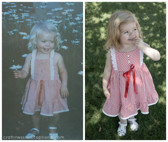 Holy twinner!! SO adorable, my mom always made us the most froo-froo fluffy dresses, I don’t think I’d be able to handle a re-creation! Love your re-do, it is spot-on perfect. That was a lot of awesome-hyphens.