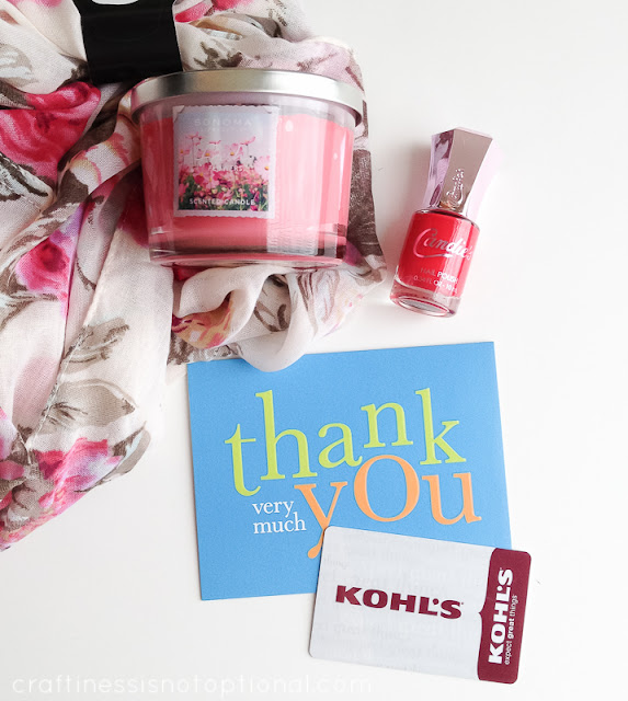 Oh yeah, Kohls sent along some amazing little gifts for me, too! I am in love with the nail polish color, and I adore a good floral scarf & candle combo.