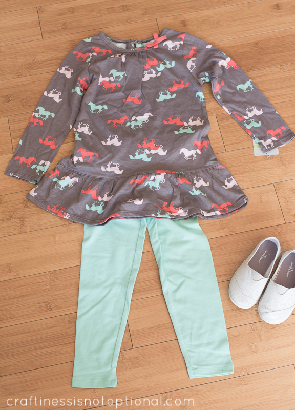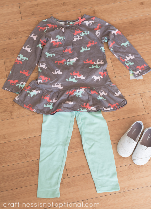love ’em….also a few pairs of faux Toms that are flipping adorable. I love kids shoes. So anyways….I tried to pick out clothing that mix and matched, and we had a ton of fun making new outfits when we got home! Here are a few of my faves below!