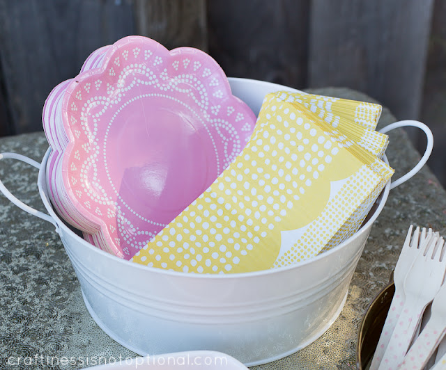 For the plates, I had to get these gorgeous scalloped plates and some of these adorable yellow napkins from Target.