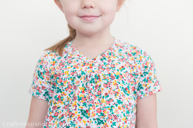 She is pretty great about loving most of the stuff I make, especially if she gets input. She actually didn’t give any with this outfit, but luckily loved the flowers on the top..hehe! phew. Anyways, I’m excited to show you this new outfit-created for Sewing Like Mad’s Sewing for Kindergarten series! Check it out, she’s got a lot of fun stuff going on, and not only for kinder aged kids!